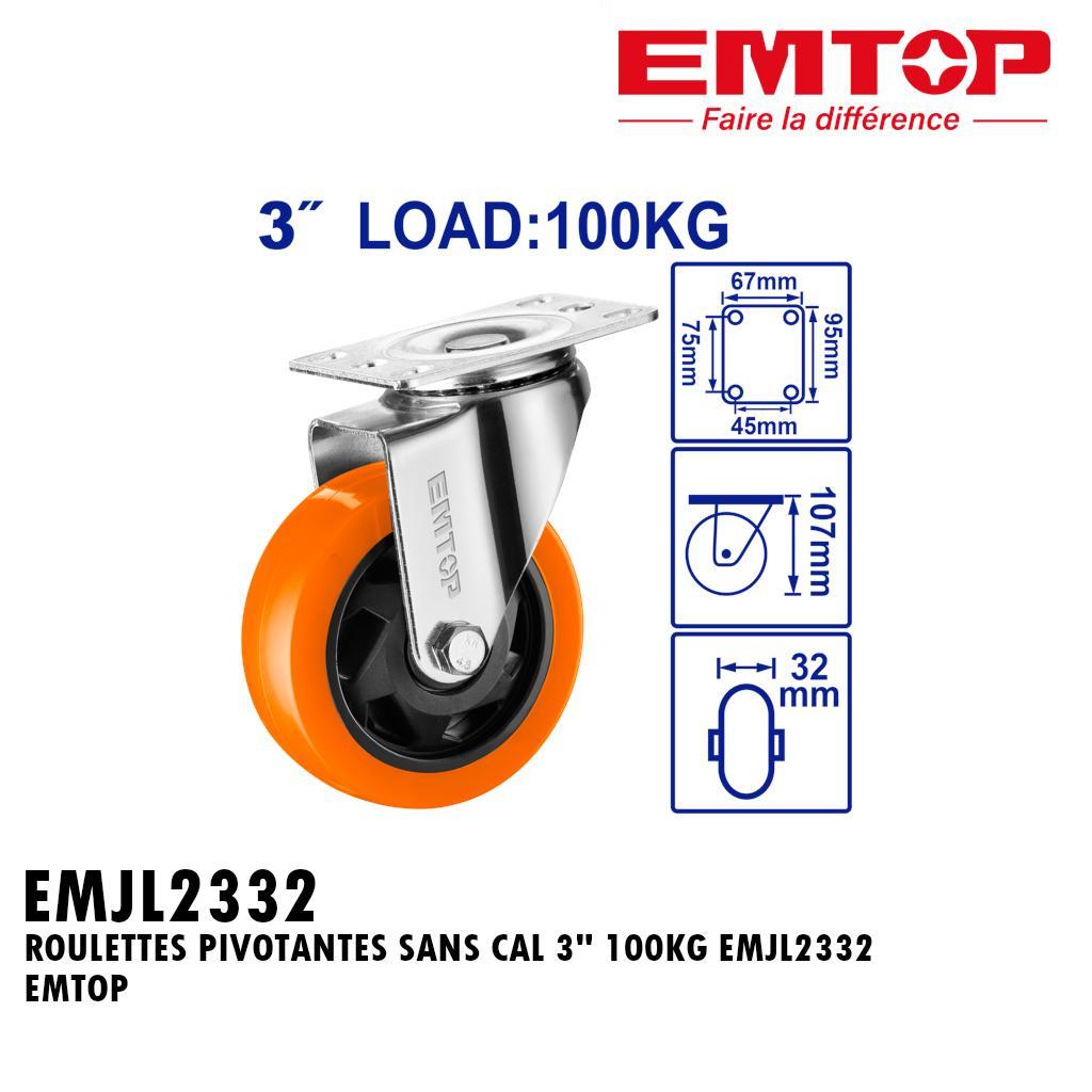 ROULETTES PIVOTANTES AVEC CAL 3″ 100KG EMJL2333 EMTOP