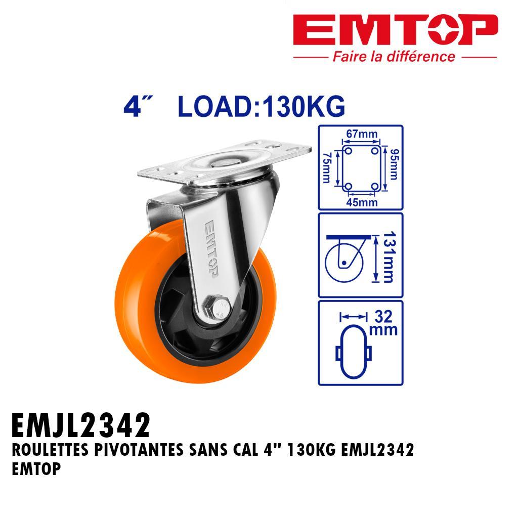 ROULETTES PIVOTANTES SANS CAL 4″ 130KG EMJL2342 EMTOP