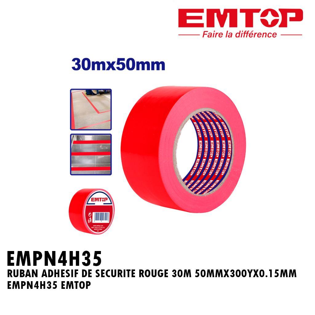 RUBAN ADHESIF DE SECURITE ROUGE 30M 50MMX300YX0.15MM EMPN4H35 EMTOP