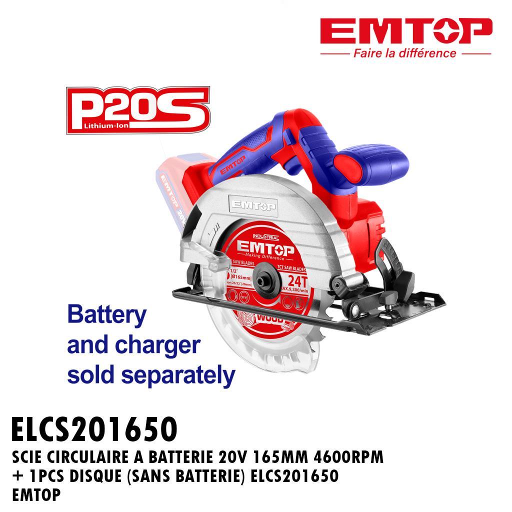 SCIE CIRCULAIRE A BATTERIE 4600RPM 165MM (SANS BATTERIE/CHARGER) ELCS201650 EMTO