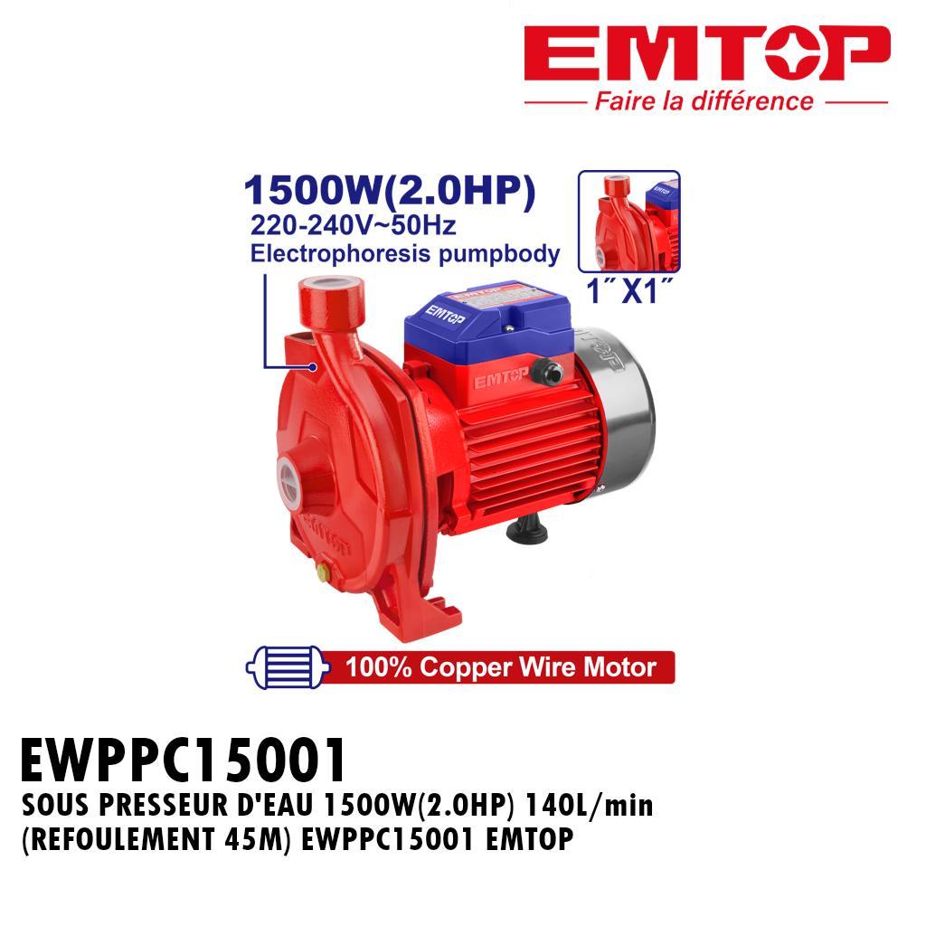 SOUS PRESSEUR D’EAU 1500W(2.0HP) 140L/min (REFOULEMENT 45M) EWPPC15001 EMTOP