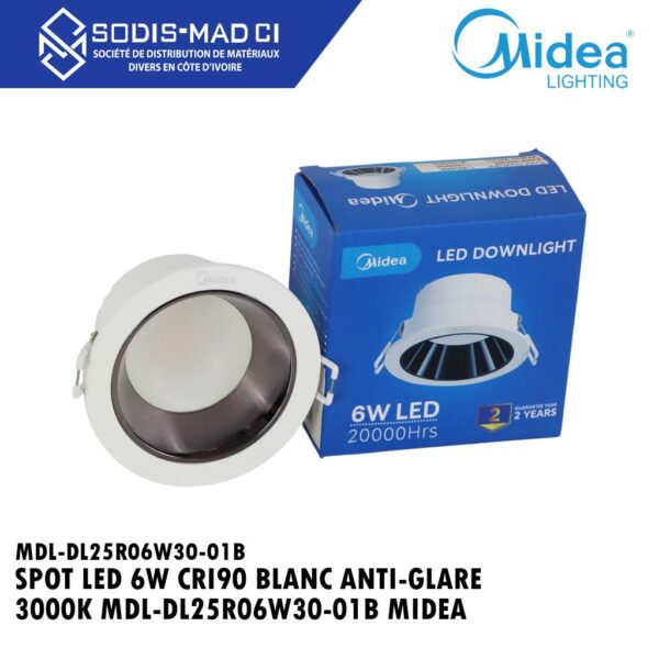 SPOT LED 6W CRI90 BLANC ANTI-GLARE 3000K MDL-DL25R06W30-01B MIDEA