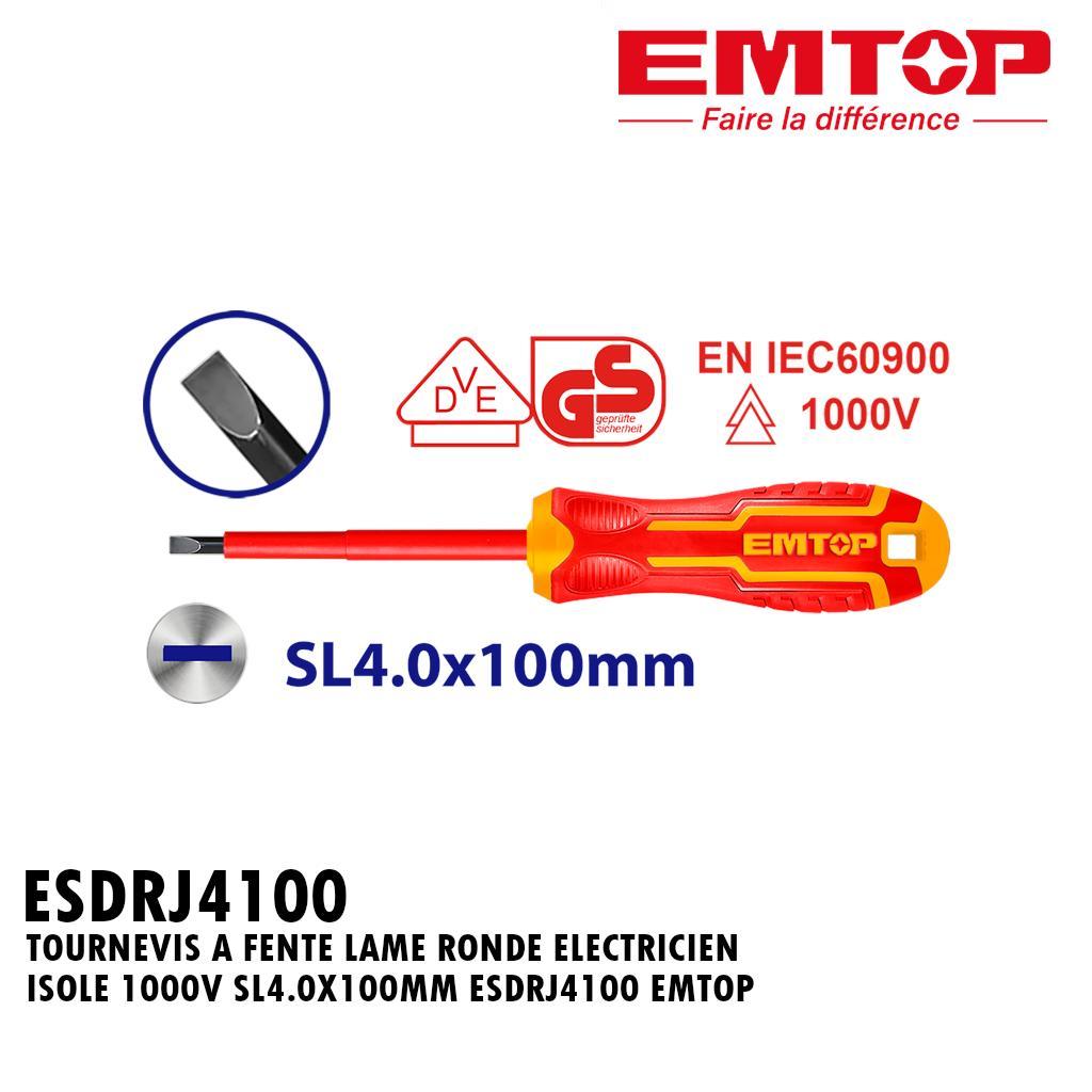 TOURNEVIS A FENTE LAME RONDE ELECTRICIEN ISOLE 1000V SL4.0X100MM ESDRJ4100 EMTOP