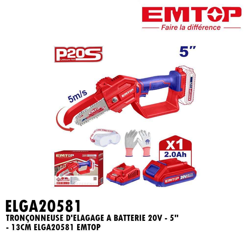 TRONÇONNEUSE D’ELAGAGE A BATTERIE 20V – 5″ – 13CM ELGA20581 EMTOP