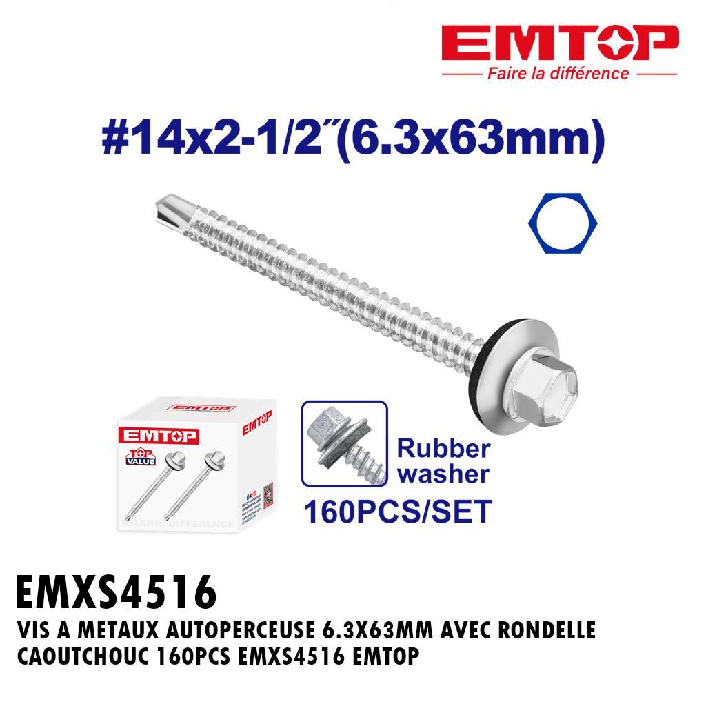 VIS A METAUX AUTOPERCEUSE 6.3X63MM AVEC RONDELLE CAOUTCHOUC 160PCS EMXS4516 EMTOP