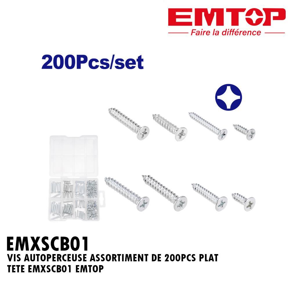 VIS AUTOPERCEUSE ASSORTIMENT DE 200PCS PLAT TETE EMXSCB01 EMTOP