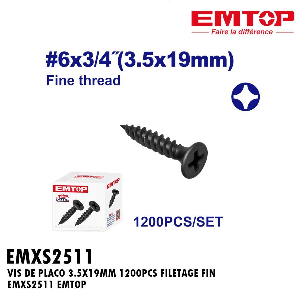 VIS DE PLACO 3.5X19MM 1200PCS FILETAGE FIN EMXS2511 EMTOP