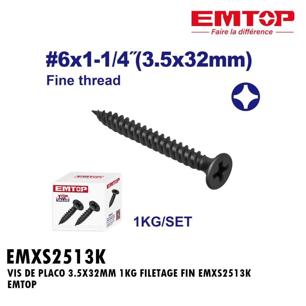 VIS DE PLACO 3.5X32MM 1KG FILETAGE GROSSIER EMXS1513K EMTOP