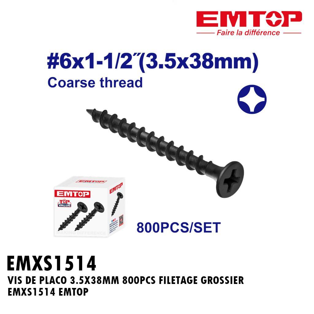 VIS DE PLACO 3.5X38MM 800PCS FILETAGE GROSSIER EMXS1514 EMTOP