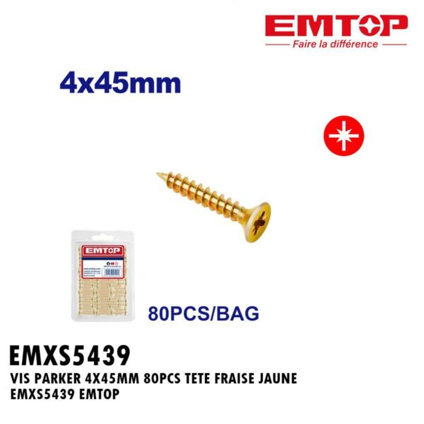 VIS PARKER 4X45MM 80PCS TETE FRAISE JAUNE EMXS5439 EMTOP