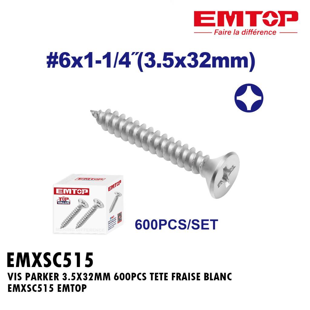 VIS PARKER 3.5X32MM 600PCS TETE FRAISE BLANC EMXSC515 EMTOP