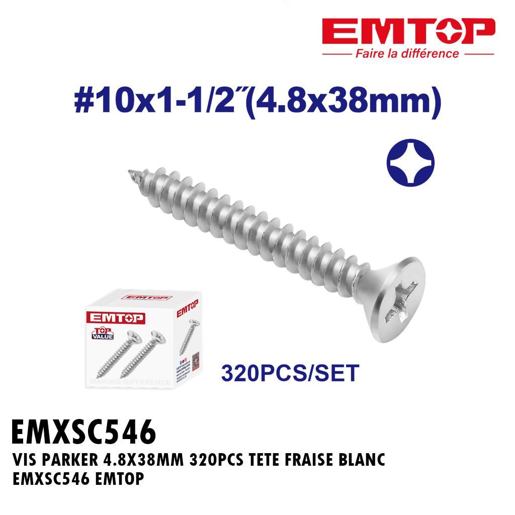VIS PARKER 4.8X38MM 320PCS TETE FRAISE BLANC EMXSC546 EMTOP