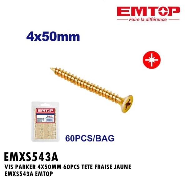 VIS PARKER 4X50MM 60PCS TETE FRAISE JAUNE EMXS543A EMTOP