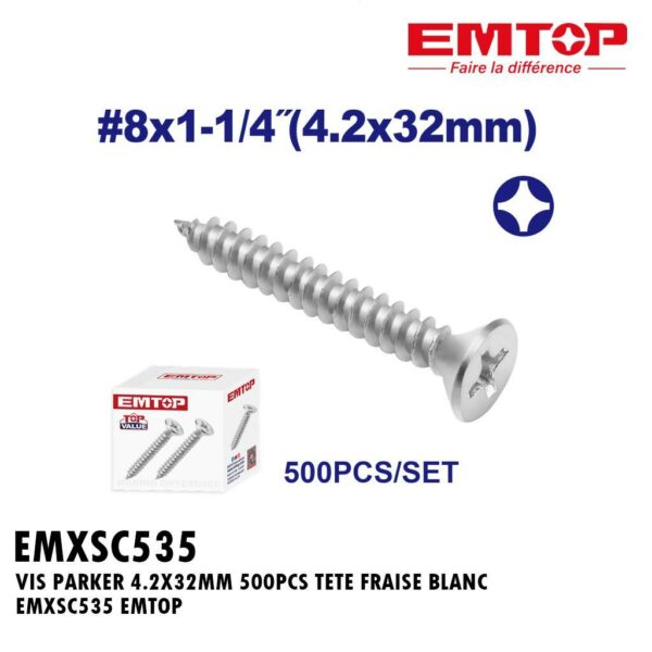 VIS PARKER 4.2X32MM 500PCS TETE FRAISE BLANC EMXSC535 EMTOP
