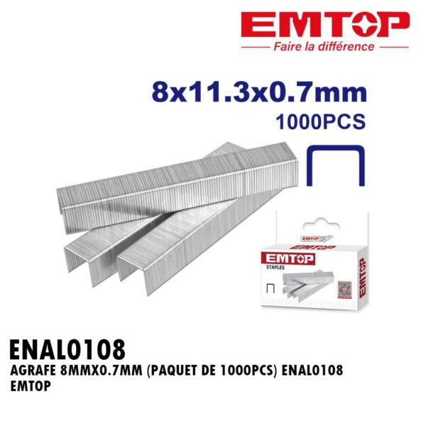 AGRAFE 8MMX0.7MM (PAQUET DE 1000PCS) ENAL0108 EMTOP